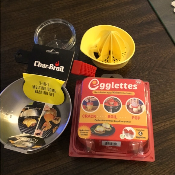3 NEW items retailing over $30. Baster with measurement bowl, egg cooker and fresh squeeze juicer with glass cup.