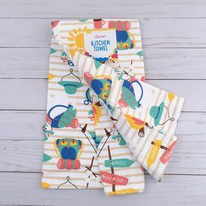 Classic flat tea towel surface reverses to absorbent terry cloth.