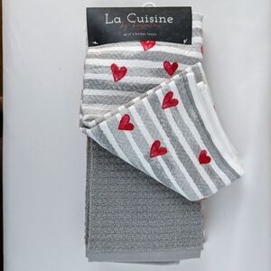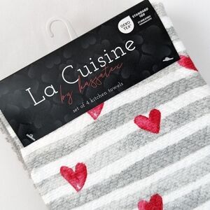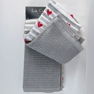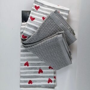 Kitchen Towel Set Of Four (4) Hearts & Stripes On White (2) Solid Grey NWT