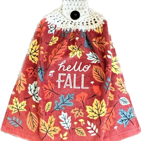 I crochet all the tops myself they are a great gift. You can hang them almost anywhere. I like to use mine in the kitchen on my stove or by the sink where I can easily dry my hands. I also like to use my towels in the restroom never have to worry about the towel falling on the floor.