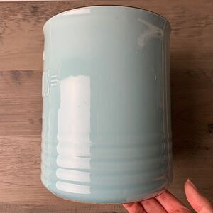 Kitchen Utensil Holder Ceramic Crock Large Robin’s Egg Blue Farmhouse Dowan