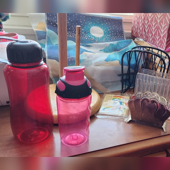 We have a paper towel holder, a couple waterbottles, cute vintage wall light switch plate with a thermometer, and an assortment of napkin holders.