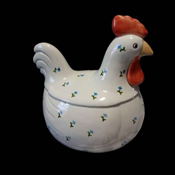 White with blue decorative flowers serving dish. In excellent condition. No cracks or chips.