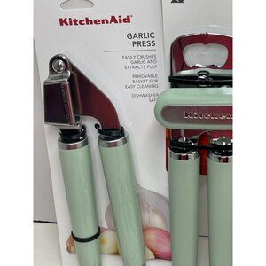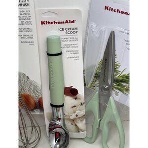 This versatile KitchenAid set includes essential kitchen tools in a stylish mint green finish, designed for functionality and durability, ideal for culinary tasks.