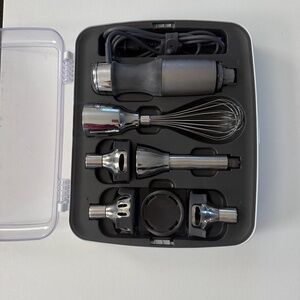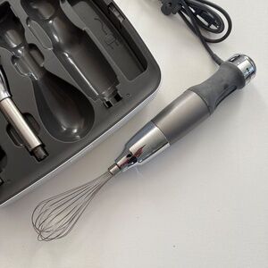 This complete set comes with multiple stainless steel attachments and a durable storage case, perfect for blending, chopping, whisking, and mixing with ease.