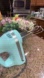 Stylish KitchenAid hand mixer in aqua. Features five speed settings. Used only once. Bought it for a beach house but never did any baking there. It is in great condition and like new. Does not come with box.