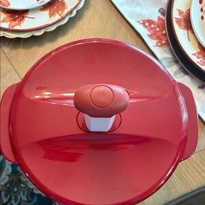 Spin your greens dry with ease. Stylish deep red design. Perfect for any kitchen.
