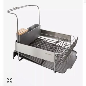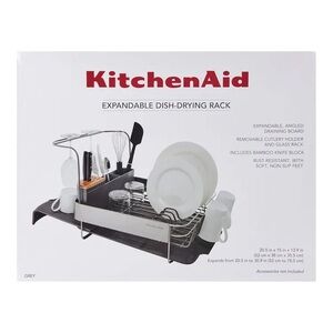 Originally $190 from Macys. Keep your kitchen organized with the KitchenAid Expandable Dish-Drying Rack. Featuring a sleek black and silver design, this rack is perfect for drying dishes efficiently. Its expandable feature allows for versatile use, making it a must-have for any kitchen.