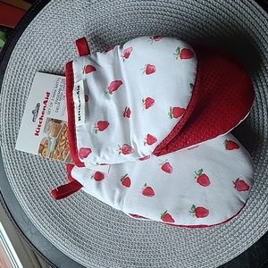 Set of 2, Red/White/Green, textured silicone for easy grip, comfortable and durable, machine washable, 💯% cotton shell, 💯% polyester lining