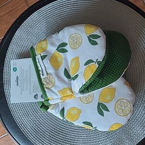 Set of two mini mitts with lemon print.