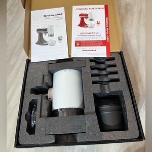 KitchenAid Shave Ice Stand Mixer Attachment in excellent condition. Used only a few times. Includes original box and manuals. Note: missing 2 of the plastic ice molds and lids (attachment functions perfectly; replacement molds are available separately). Great for shaved ice, snow cones, and frozen desserts.