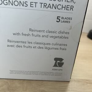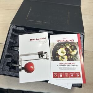 KitchenAid Spiralizer, PEEL, CORE & SLICE Attachments 5 Blades KSM1APC KSM2PC Great Pre-Owned condition ( see pics for details) PRODUCT FEATURES: * Connect to any household KitchenAid® Stand Mixer* power hub and use the power of the motor to run the spiralizer attachment. *sold separately. * Includes 5 quick-change blades* so you can be creative with fresh ingredients - *Spiralizing (Medium and Fine), Slicing (Large and Small Core), and an optional Peeling Blade * Premium metal construction provides durable long lasting performance, and when attached to the stand mixer, provides stability and ease of use. * The attachment and accessories fit inside its own storage case, designed for easy access and simple storage. * All blades are top-rack dishwasher safe and the attachment body can be wiped clean with a warm, damp cloth. WHAT'S INCLUDED Includes: (1) Spiralizer attachment (1) Fine spiralizing blade (1) Medium spiralizing blade (1) Slicing blade (small core) (1) Slicing blade (large core) (1) Peeling blade (1) Fruit and vegetable skewer (1) Convenient storage case Fast shipping: same or next business day! Thank you ❤️