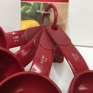 KitchenAid Set of Four Measuring Cups Rubber Grip Red Kitchen Aid Cooking Baking