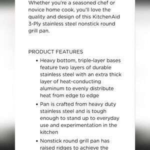 KitchenAid Stainless Steel 3-Ply Base 10.25 Non-Stick Grill Pan