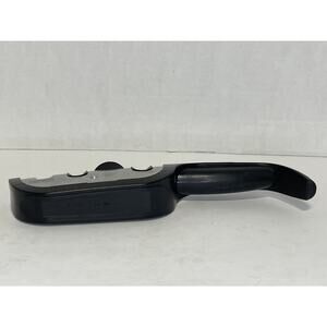 This KitchenIQ Edge Grip 2-Stage Knife Sharpener features both coarse carbide blades and fine ceramic rods, designed to sharpen and polish straight and serrated kitchen knives with ease. The stable “V” edge-grip base allows it to secure on a countertop or table edge for safer use. With its compact size, ergonomic handle and preset sharpening angles, it’s an ideal sharpening tool for everyday kitchen maintenance. The unit is in excellent condition with no visible damage or excessive wear, ready for immediate use or gifting.