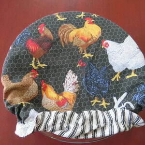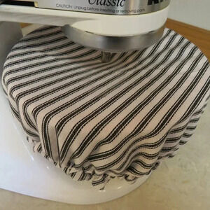 Kitchenaid Bowl Cover, Chickens and White and Black Ticking Reversible Mixer Cover.