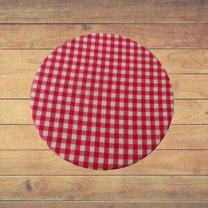 Farm and red gingham on reversible side Kitchenaid mixer bowl cover.