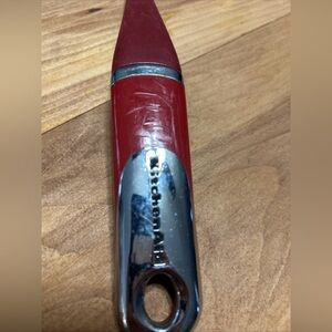 Red slotted spatula with a sturdy handle and metal accent. Perfect for flipping and serving.