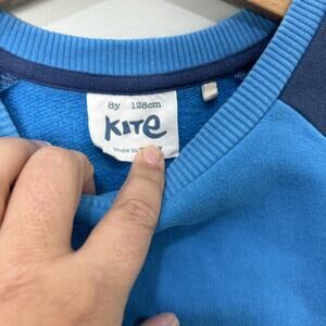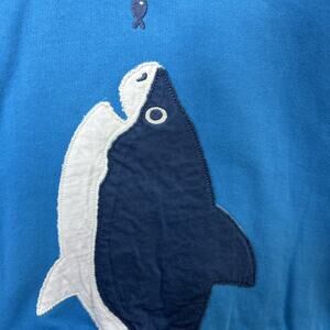 Blue sweatshirt with a shark appliqué on the front. Size is 8 years, VGUC for normal wash wear.