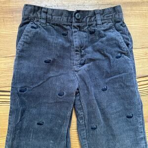 dark gray corduroy, cotton, whales embroidered, adjustable waist