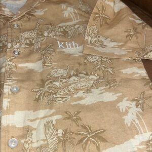 Gently worn tropical/ animal print button down shirt no stains no holes please review pics