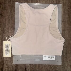 Cream ribbed activewear material that is very breathable. Light padding. Brand new with tags, never worn. Will come in original packaging. Bought at retail for $95