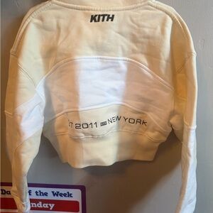 Kith sweatshirt in cream. Ribbed texture with subtle logo tag.