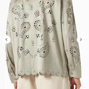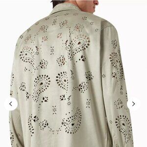 • Crafted from soft and comfortable microsuede, this button-down boasts a modern, paisley design thanks to intricate laser cutting