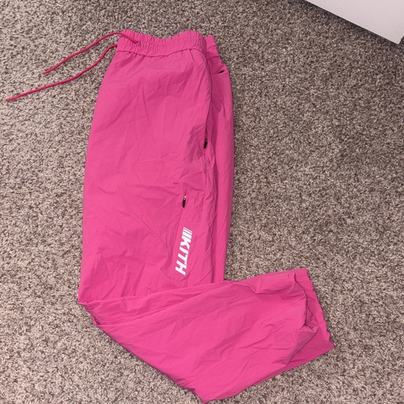 Bold fuchsia track pants with Kith branding. Perfect for casual outings.