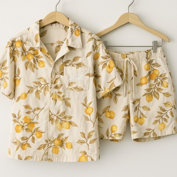 Adorable matching lemon print set from Kith Kids. Made from 100% cotton, soft and breathable for everyday wear.