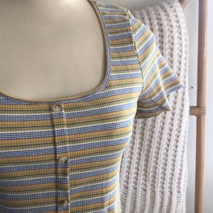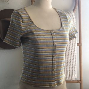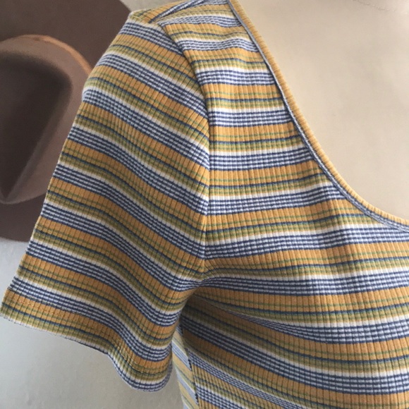 Kith & Kin Stripe and multicolor top button front detail stretch material quality material scoop neck short sleeve NWT size large