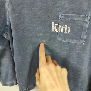 Kith Long Sleeve Pocket Tee Kids 4 5 Faded Blue Logo Graphic Crewneck Cotton