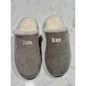 These are brand new slip on slippers. No box. Light brown tan color with kith logo. Corduroy material. Size 44/US 11. See photos!