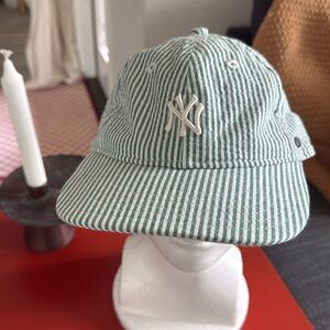 Stylish New York Yankees cap with greenish and white stripes. Perfect for casual wear.