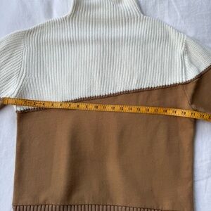 100% cotton Kith color block sweater with a turtleneck. Color is off white and camel. Not sure what season it’s from. Selling because I no longer reach for it. Size small (I think) men’s, but can fit a woman’s XS-L depending on how you like it to fit. See approximate measurements in pics. PLEASE MAKE AN OFFER! I’m trying to get clothes out of my closet, so will accept offers and will discount shipping and all items in bundles. Please let me know if you have questions!