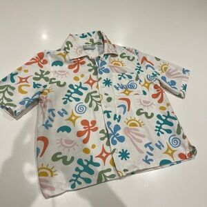 Vibrant set with floral and abstract patterns. Features blue, green, orange, and pink on a cream base. Perfect for the summer