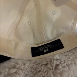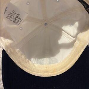 Used hat from kith. Normal wear. Hat cleaned inside but stain still there inside the front rim. No other visible stains that I see.