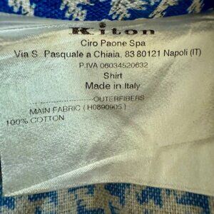 My Kiton of Napoli Dress/Sport Shirt, Size L purchased in 2024 800RT at Neiman Marcus only worn 2-3 times is in Excellent (like new) condition. It is truly a luxury Houndstooth look.. Measures Size L typical 16-16.5 neck and 23" pit to pit and Kiton's typical 33" yoke or length to waist. I measured the sleeves from Collar seam to Shoulder seam at 7.25" and Shoulder seam to end of arm cuff at 25.25". I also measured back shoulder seam to shoulder seam and it was right at 20".