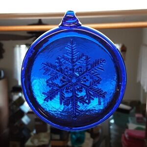 A set of 2 stunning cobalt blue suncatcher ornaments - 1 snowflake and 1 snowman