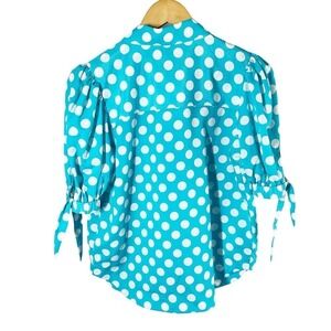 Kitri Ramona Polka Dot Boxy Blouse Top Short Sleeve Blue White Size US 4 or UK 8. Aqua spot color. New with tag, no flaws.