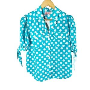 Kitri Ramona Polka Dot Boxy Blouse Top Short Sleeve Blue White Size US 4