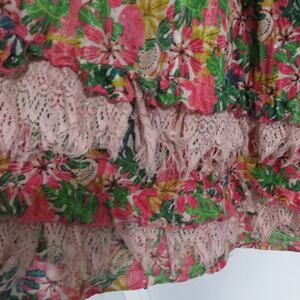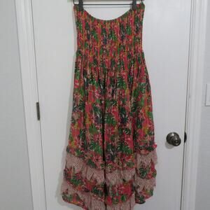 Kitsch & Pop Womens Sz S M Pink Greent Fruit Print Strapless Flowy