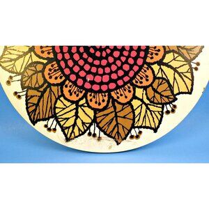 Kitschy Trivet FLOWER POWER 11 inch Wall Hanging MOD Decor Orange Red Wood