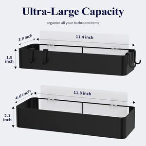 Kitsure Large Shower Caddy - 2 Pack Adhesive Organizer, Large, Black