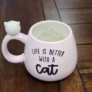 Kitten Figurine Pink Ceramic Coffee Mug 14 Oz - Life Is Better With a Cat