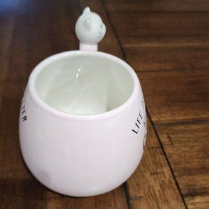 Lovely White Kitten Figurine Pink Ceramic Coffee Mug 14 Oz - Life Is Better With a Cat