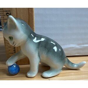 Kitten With Blue Yarn Ball Goebel 3" Porcelain Cat