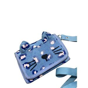 Super cute wallet or lanyard attachment, Velcro closer cute kitten face on the front credit card coin in cash and signature logo