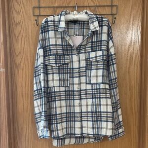 Kittenish Blue and White Plaid Button-Up Shacket -NWT