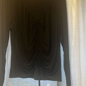 Super cute, can be a full length shirt but can also pull the tie and make it a crop top!